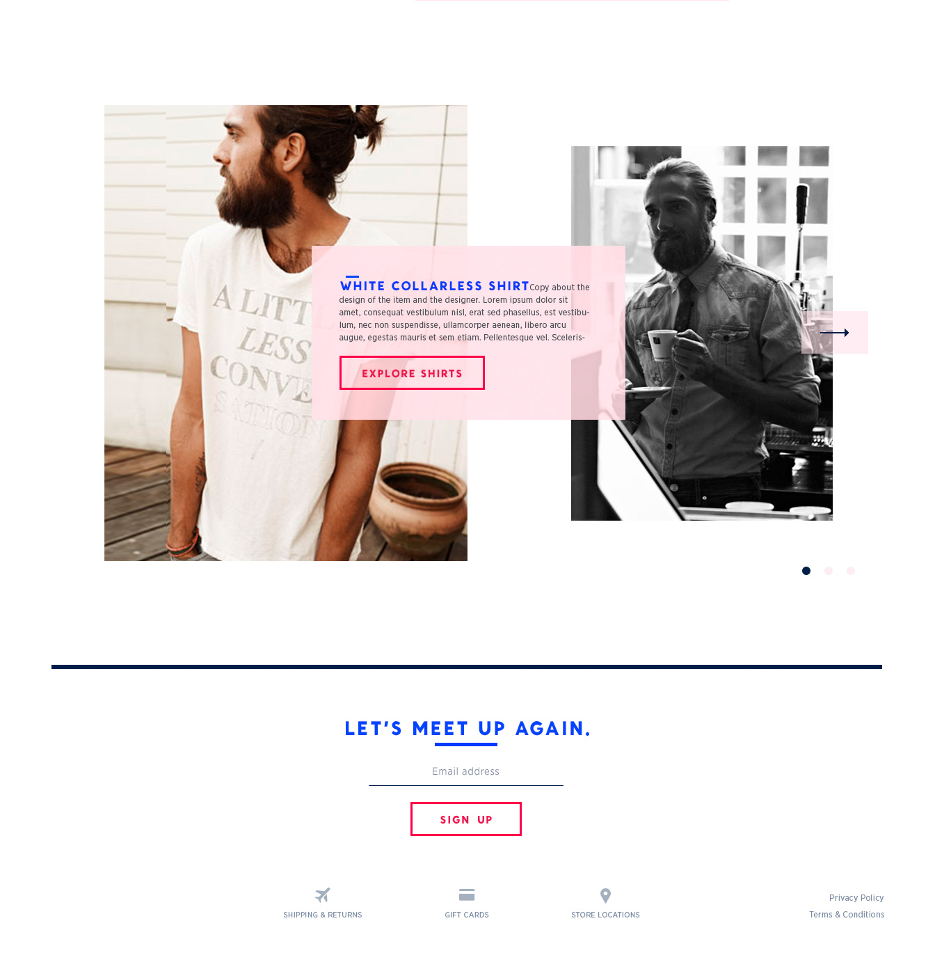 Only a handful of carefully curated items are displayed on the website at a time which allows for the design to have a little playfulness while encouraging the discovery of unique pieces.