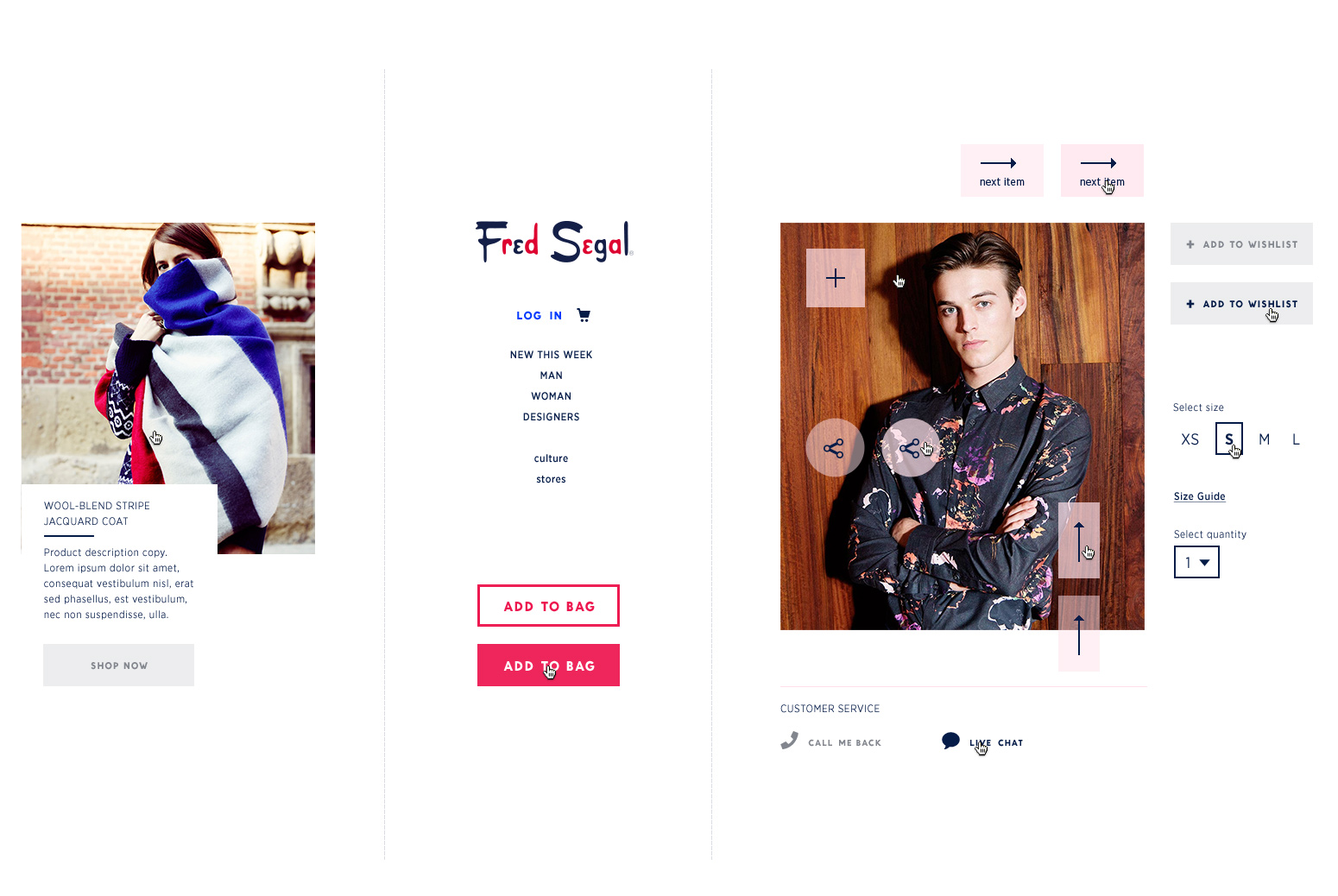 The Homepage is designed with a nod to Fred Segal’s historical graphic elements appropriated to a new yet familiar digital visual language.